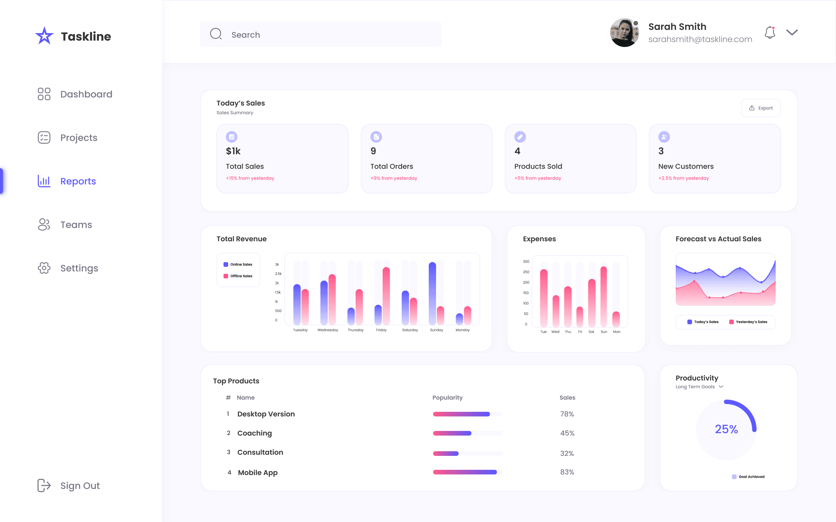 This project is a self-initiated productivity, task, and team management platform designed to support how modern teams plan work, execute efficiently, and measure performance. I owned the product end to end, from problem definition and user research through UX strategy, interaction design, visual design, and reporting frameworks. The platform integrates task management, team collaboration, sales, and productivity reporting into a single, cohesive system, prioritizing clarity, scalability, and data-driven decision-making.