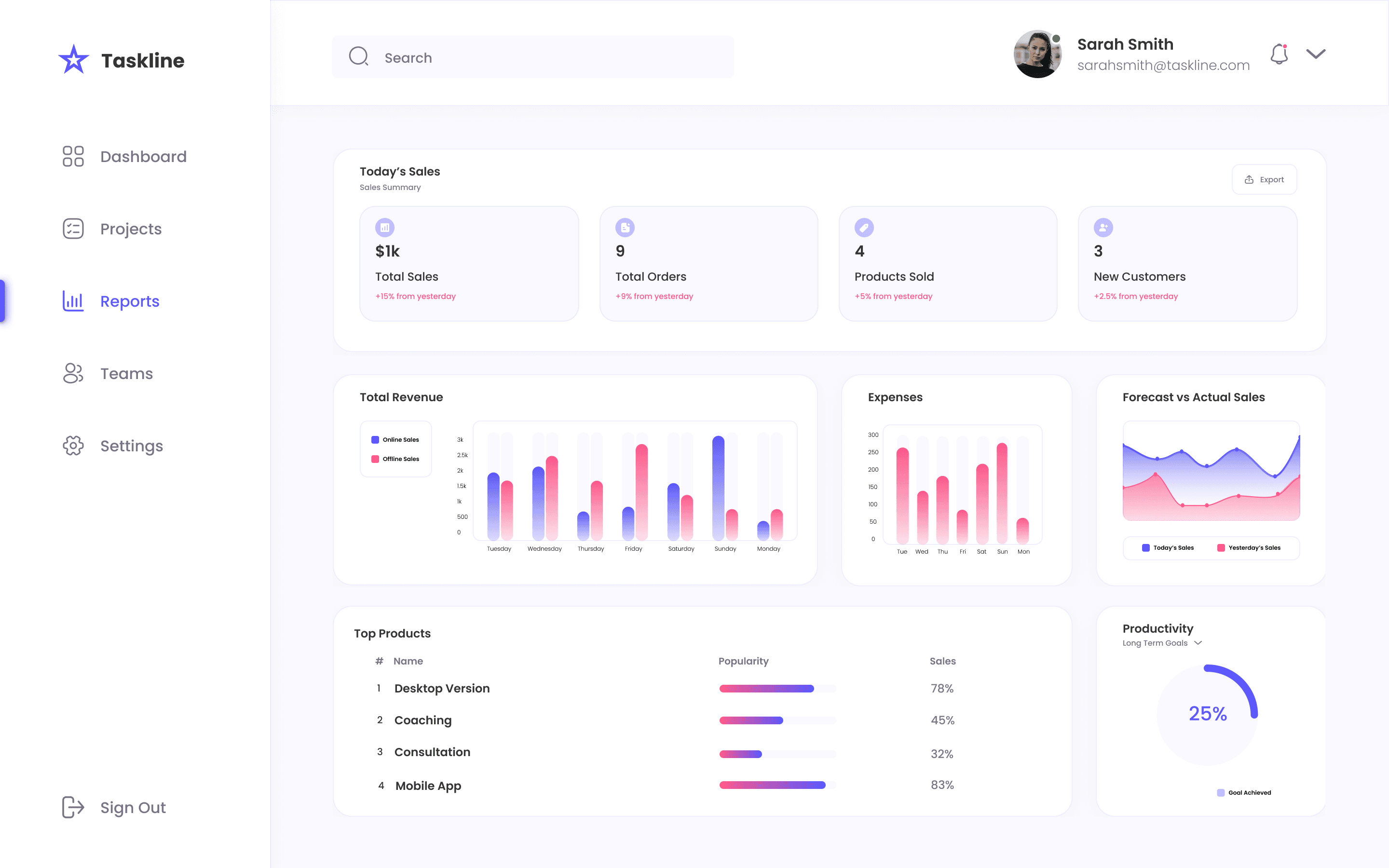 The final dashboard delivers a unified experience that surfaces priorities, tracks progress, and supports both individual and team workflows. By consolidating tasks and performance indicators into a single view, the design reduces friction and enables users to focus on execution rather than navigation.